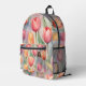 Personalised Initial Watercolor Tulip Flowers Back Printed Backpack