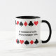 The playful design showcases the four suits of playing cards: hearts, clubs, diamonds, and spades, rendered in striking red and black hues along with two customisable typography fields that currently read "The hearts of spades and the diamonds of clubs." and "A paradox of suits, where mystery rubs." Personalise this fun and inspirational mug or purchase as is.
