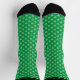 Personalised lucky shamrock socks. These fun socks are largely covered in a pattern made of white shamrock illustrations set to stand out against a kelly green background. The design includes a line of custom text, ideal for adding your name and making them uniquely yours.
