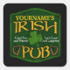 Add your last name or other custom text to this cool Irish Pub merchandise "Your Name's Irish Pub". Very cool personlized gift for St. Patricks day, Irish heritage or any time of year. Grunge vintage look green background with frame shape and celtic text, harp and "good fun and friends", and "luck, love and laughter". All Designs Copyright © 2013 www.CuteComfy.com