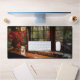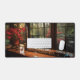 Bring the serenity of this Japanese themed workbench into your workspace with this exquisite desk mat. Personalise it with a name printed on the lower right corner. This mat features a view of a Japanese workbench with a view of a lush green garden with a high-quality print from a high definition graphic. It provides a smooth and comfortable surface for your work for your laptop, keyboard and mouse. It can also transform your workbench with a stylish and elegant touch. Perfectly suited for all creators, artists, writers and anyone inspired.