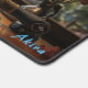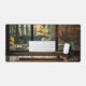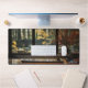 Bring the serenity of this Japanese themed workbench into your workspace with this exquisite desk mat. Personalise it with a name printed on the lower right corner. This mat features a view of a Japanese workbench with a view of a lush green garden with a high-quality print from a high definition graphic. It provides a smooth and comfortable surface for your work for your laptop, keyboard and mouse. It can also transform your workbench with a stylish and elegant touch. Perfectly suited for all creators, artists, writers and anyone inspired.