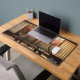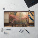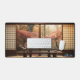 Bring the serenity of this Japanese themed workbench into your workspace with this exquisite desk mat. Personalise it with a name printed on the lower right corner. This mat features a view of a Japanese workbench with a view of a lush green garden with a high-quality print from a high definition graphic. It provides a smooth and comfortable surface for your work for your laptop, keyboard and mouse. It can also transform your workbench with a stylish and elegant touch. Perfectly suited for all creators, artists, writers and anyone inspired.