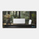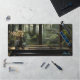 Bring the serenity of this Japanese themed workbench into your workspace with this exquisite desk mat. Personalise it with a name printed on the lower right corner. This mat features a view of a Japanese workbench with a view of a lush green garden with a high-quality print from a high definition graphic. It provides a smooth and comfortable surface for your work for your laptop, keyboard and mouse. It can also transform your workbench with a stylish and elegant touch. Perfectly suited for all creators, artists, writers and anyone inspired.