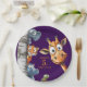 Make your little one's birthday party roar with these charming jungle animals paper plates! The design showcases a delightful cast of characters including a playful giraffe, a mischievous tiger, a happy hippo, a gentle elephant, and a tiny turtle peeking out from behind a tree. The deep purple backdrop makes the vibrant animal illustrations pop, creating a festive and exciting atmosphere for any birthday celebration. These plates are ideal for a jungle adventure or a wild animal-themed party.