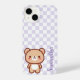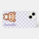 Protect your phone with this cute kawaii bear personalised design on a chequered background. Customise this case with a name at the bottom of the phone case in a sideways orientation next to the cute bear.