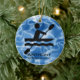 Kayaking Personalised Ornament Christmas 20XX. A kayaker in motion against a wavy, blue water background. All text customisable, front and back!