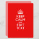 A personalised racy red Keep Calm and Carry On style saying on a custom gift. Humourous or whimsical try on your creative words on the two editable lines of text. Remember to use CAPITAL letters for best results.