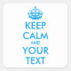 Personalised KEEP CALM and YOUR TEXT - blue Square Sticker