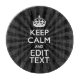 A personalised Keep Calm saying on an elegant black and charcoal sunburst. Humourous or whimsical try on your creative words on two editable lines of text. Remember to use CAPITAL letters for best results.