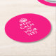 Personalised KEEP CALM AND Your Text for Hot Pink Round Paper Coaster