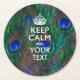 Personalised KEEP CALM AND Your Text for Peacock Round Paper Coaster