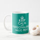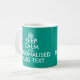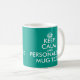 Personalised Keep Calm and your text mugs. Personalizable template. Cute Birthday or wedding favour gift idea for men and women. Customise background colours ie aqua / turquoise blue. Vintage keepcalm typography with royal crown. Create your own funny KeepCalmandCarryOn parody. Simply edit the text of this template to make a unique design. Popular quotes: Keep calm and party on. Keep calm and love me. Keep calm and drink coffee. Personalised keep calm and carry on mugs are a great gift idea for friends and family.