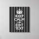 Personalised KEEP CALM AND Your Text on Stripes Canvas Print