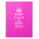 Personalised KEEP CALM AND Your Text Vibrant Pink Notebook