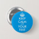 Personalised KEEP CALM and YOUR TEXT - blue background colour and white words colours round button