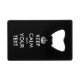 Personalised keep calm and your text bottle opener. Credit card size. Vintage keepcalmandcarryon typography design with little crown. Make your own funny keep calm and carry on parody. Keepcalm and drink beer. Keep calm and party on. Black and white or custom background colour. Humourous gift idea for men and women.