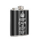 Personalised KEEP CALM Your Text on Black Stripes Hip Flask