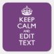 Personalised KEEP CALM Your Text on Purple Decor Square Sticker