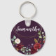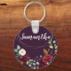 Personalised Key Chain Plum Purple Roses Gold Geom