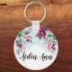 Personalised Key Chain Tropical Flower on Blue Omb