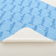 Sherpa blanket in a personalised name pattern in blue on a pastel blue patterned background - to change to your child's name, click on "personalised this template" and fill in the name field at the top right.