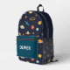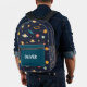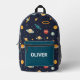 This Personalised Kids Cute Outer Space Printed Backpack features a fun space design with planets and rockets. Add a name for a unique touch!