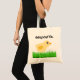 Personalised tote bag with adorable little light yellow chicken standing on green grass
