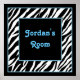 Personalised Kids Wall Decor. Sassy decorative poster for your teen or pre-teen diva! Black and white zebra stripes with blue text and accents.
