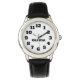This image shows a children's watch featuring a round, silver-coloured case with a white dial. The watch has large, easy-to-read black numbers from 1 to 12, and the hour and minute hands are also black, with the words "HOUR" and "MINUTE" labelled on them. The name on the watch face can be customised to any name of choice, making it a personalised accessory for kids.