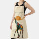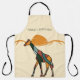 This personalised Mid-Century Modern giraffe apron brings a touch of quiet elegance into the kitchen — a graceful giraffe silhouette rendered in flowing segments of mustard, terracotta, sage green, forest green, and warm beige, framed beneath a soft savanna sky.