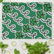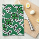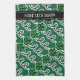 Personalised kitchen towel with lucky irish clover. Cute gift idea for home or business. Customisable background colour and text. St Patricks Day shamrock design.