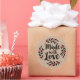 A personalised 3 inch "made with love" sticker on a kraft coloured background. Features a pretty berry wreath and the words "made with love" in an elegant script font. A pretty finishing touch for all of your handmade gifts. Designed for you by Blackberry Boulevard.