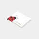 This is Personalised Ladybug notepad. This post it notes featuring is a white background with large red and black ladybug peeking in from the bottom left side. You can customise with a name or message. It is fun office supplies for work or home.