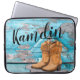 Personalised Laptop Case Blue Wood Barn Door Boots