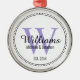Personalised Lavender Monogram Newlywed Metal Christmas Ornament. The dotted border is reminiscent of milgrain, which is a jewellery-detailing technique often used for engagement and wedding rings. The milgrain border adds both a modern and elegant style to this ornament.
