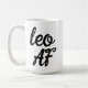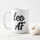Custom zodiac mug. Displayed is Leo sign mug design. Customisable to any zodiac sign. Astrological zodiac sign LEO AF design. Customisable Zodiac Sign Mug; Funny AF LEO Coffee Mug.