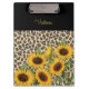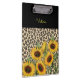 Personalised leopard animal print and sunflowers clipboard. You will be able to easily personalise with a name against the black background. This would also make a unique personalised gift for a teacher, nurse, real estate agent, etc.
