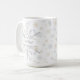 Enjoy the snow with this winter coffee mug decorated with gold and silver snowflakes. Personalise with a name on one side and the other side has the words "Let it Snow"