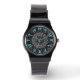 Personalised colourful decorative black, red, orange, teal and blue boho mandala wristwatch design with the owner's first and last name.