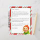 Add your child's name to this personalised letter from Santa. Vintage watercolor retro cute little elf child smiling. Back has a North Pole sign with illuminated Christmas lights and a snowy background with a stamp from Santa and The North Pole. Candy cane background.