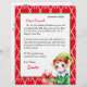 Add your child's name to this personalised letter from Santa. Cute elf holding a gift and candy cane background. On the back is a colouring page of Santa Claus holding a plate of cookies with a snowflakes background.