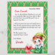 Add your child's name to this personalised letter from Santa. Cute elf holding a gift and candy cane background. On the back is a colouring page of Santa Claus holding a plate of cookies with a snowflakes background.