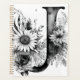 The front cover of this elegant planner features a stunning "J" adorned with vibrant watercolor art in black and white. The bold initial is beautifully framed by delicate flowers and leafy greens, offering a touch of sophistication to your daily planning.