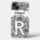 Personalised Letter R Black White Tattoo Flowers Case-Mate iPhone Case