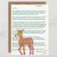 Background has whimsical Super Snow the Blue-eyed Reindeer a cute button buck white-tailed deer with white spots on his coat, and a red and blue nose in a jingle bell look. Insert Child's Name, Hometown, and Current Year into the Fields (shown in CAPS to be easy to identify to edit). Festive Santa letter addressed to Boys (can also Personalise to be addressed to Girl in place of Boy within the second paragraph). Leave letter wording as is, or delete my text and insert your own special message making sure text falls within safe red dotted lines on final letter by clicking art/view preview. NOTE: Click To Remove the Zazzle Logo below Add to Cart area (logo shown on backside). Backside has old-fashioned decorated Christmas Tree with gingerbread man, ornaments, and yellow star, and the wording, Merry Christmas to You, From the North Pole, Alaska 99705 (fun Santa address). The letter(s) will be shipped to ordering customer, when Christmas time approaches simply add Stamp and drop in the mailbox at your convenience to have letter from Santa delivered to the child or children. Be sure to give yourself enough time for the letter to arrive in time to enjoy BEFORE Christmas! Fun Christmas letter for children of all ages to receive before Christmas to let them know that jolly old Saint Nick will soon be on his way. Nice keepsake memory item. Personalise letters by typing in each Child's First Name and letter details separately and add to shopping cart. Insert into envelopes and send to your child, grandchild, niece, nephew, godchild (Shh! From Santa of course!)