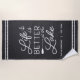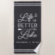 Upgrade your outdoor setup at your lakeside abode with this cute personalised beach towel featuring the phrase "life is better at the lake" in white lettering accented with an anchor and an oar. Personalise with your family name and/or year established beneath. Perfect for lake house housewarming parties, summer homes, or vacation rentals.
