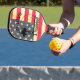 Enjoy this unique LIFE, LIBERTY & PICKLEBALL design. For the avid pickleball sports enthusiast who loves their freedom in the USA—Patriotic, American Flag. Red, White, and Blue—stars and stripes. Just add your custom text to the bottom edge to personalise your paddle - easily add your name and phone number so you'll never lose your paddle again!! Whether you're heading out for some social fun or competitive play, this one-of-a-kind custom paddle will definitely become your favourite - and you're sure to get lots of compliments. Buy one for your whole club and match at tournaments!