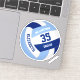 This custom volleyball themed vinyl sticker features a light and dark blue and white volleyball upon which you can customise the player's name & jersey number plus team name in a varsity letter style font - by katz_d_zynes