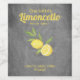 If you love making and giving away your homemade limoncello, these labels are great. A simple image of a lemon, both cut and on the plant with leaves on a grey chalkboard background. There is plenty of room for you to add your details.